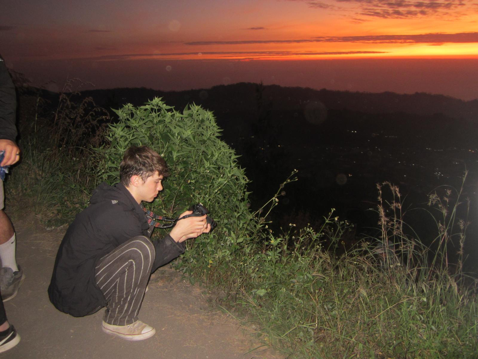 We stopped a few times to maintain the group. Those in the front were zooming up the mountain as the rest of us climbed gasping for air. Bringing the camera was a mistake. My bag was so heavy on a hike I would struggle with without a bag. Nevertheless, after 4 stops we made it to the peak. Immediately, I sat down and waited. My legs had had enough. All I cared about was seeing the sunrise.